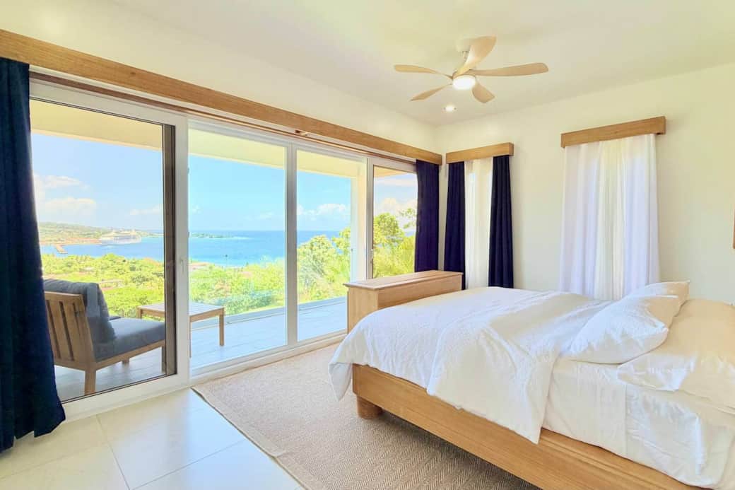 Perched in a privileged location with sweeping views of the Caribbean Sea and the Coxen Hole cruise port, this stunning villa offers the perfect blend of luxury, comfort, and unforgettable scenery. From the moment you arrive, you’ll be captivated by the endless ocean views, cruise ships arriving in the distance, and breathtaking sunsets that paint the sky every evening.